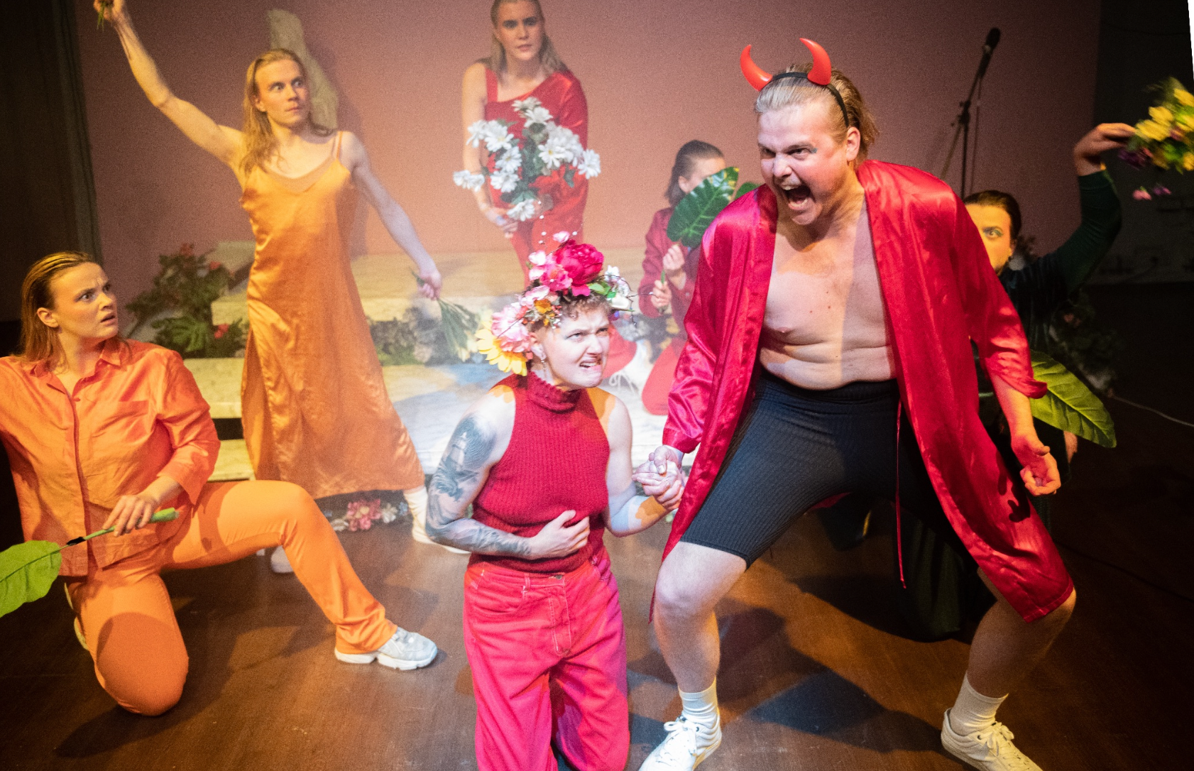 näyttämöllä: Oskari Eskola, Roope Kovalainen, Heidi Lalli, Miika Luukko, Linda Manelius, Suvi Mäkinen, Tiina Romppainen, Clarissa Rosi, Sulo Siikaranta, Netta Simola, Velma Tiusanen, Fanni Vihersaari ja Maria Viitanen